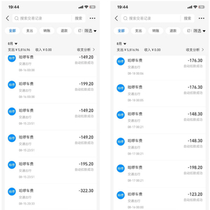 当晚,他手动输入支付密码支付了322.3元车费。7天后,齐先生意外地发现,自己的支付宝账单中凭空出现21笔“哈啰车费”。从打车那天到8月21日的7天里,每天凌晨,在短短几分钟内,他都会被平台接连扣取3笔车费。这些车费每笔在120元至200元之间,扣款方式均为免密支付,收款方均显示为“上海哈啰普惠科技有限公司”。