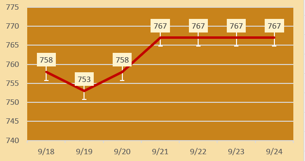 | 六福珠宝 | 黄金价格 | 767元/克 | 持平 |