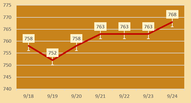 | 老凤祥 | 黄金价格 | 768元/克 | 涨5 |