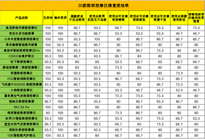 为帮助消费者更好地了解不同品牌眼部按摩仪缓解视疲劳功效和实际使用体验满意度情况,此次比较试验通过年龄20至53周岁的健康受试者前后使用300次获得缓解视疲劳功效测试数据。
