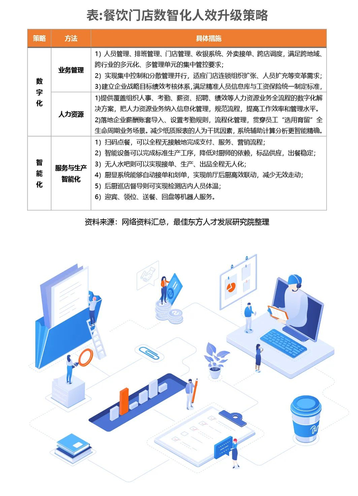 餐饮行业是以经验为主导、高人力密集行业的代表,部分餐饮企业通过奖励制度与交叉培训等手段,将员工培养成复合型人才,提升管理灵活性及服务效率。如根据技能等级增加员工相应的基础工资,为餐饮门店完成一场直播等工作则额外给予奖励;当有重要接待任务时,由对应模块负责人成立任务小组并分配工作任务,餐饮门店内具备相应工作技能的人员通过抢任务机制获得工作机会,工作任务结束后对应给予奖励等等。同时,餐饮企业也可以通过有效分割企业工作任务、整合内外部优秀人才协同工作、达成组织目标的能力,这也是未来人力变革的重要思路。