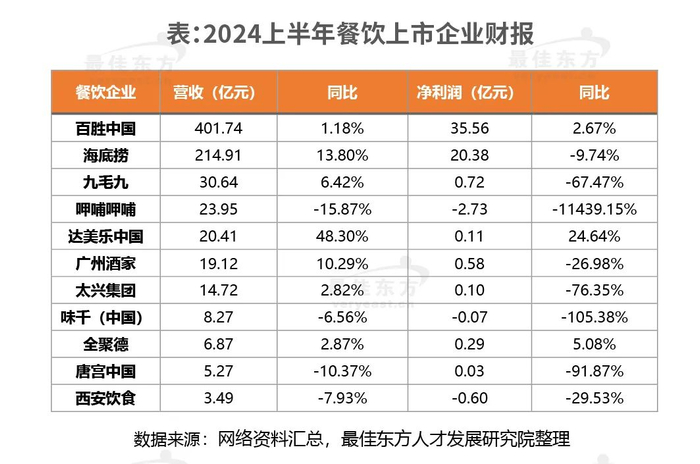 虽然中国从事餐饮业的企业众多,但能够登录资本市场的企业非常稀少。2024上半年市场环境的持续低迷让原本就处于盈利困境的企业雪上加霜,上市餐企中,包括呷哺呷哺(-2.73亿元)、西安饮食(-0.60亿元)、味千中国(-0.07亿元)在内的3家企业录得亏损,亏损总额达到3.4亿元。在一片“哀号遍野”中,海底捞此次收入与核心经营利润创历史新高,凸显出精益管理的人效成绩,海底捞在中国共经营1343家餐厅,上半年所有餐厅接待顾客总数超过2亿人次,翻台率达4.2次/天,接近2019年的4.8次/天。