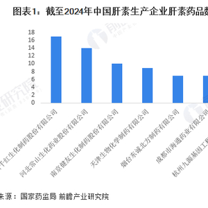 国家药监局数据显示,截至2024年8月14日,肝素药品数量最多的企业是常州千红生化制药股份有限公司,达到17款;河北常山生化药业股份有限公司和南京健友生化制药股份有限公司肝素药品数量分别达到14款和10款,位列第二和第三。