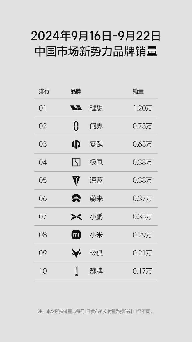理想汽车(Nasdaq: LI; HKEX: 2015)今日发布2024年第38周(9.16-9.22),周销量达1.2万辆,连续22周获中国市场新势力品牌销量第一。