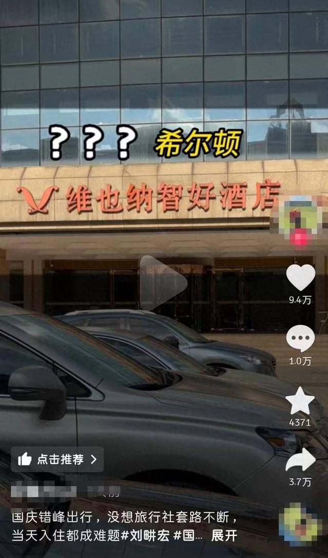 “事件起因是想国庆错峰出行,感受江西风情,没想到刚落地就大吵了一架。”在视频中网友表示,自己在“刘畊宏-我们eye旅行”直播间中购买的旅行产品宣传时称入住希尔顿酒店,但到达目的地后地点却被送到了维也纳智好酒店。该旅行产品售价3999元,折合价格1999.5元每人,产品标题中写道“住希尔顿”。网友也晒出了自己与旅行社工作人员沟通的视频,旅行社工作人员解释称“主要是考虑到这边出去玩的时候方便一点,不像希尔顿去那些离市中心20来公里。”但网友查地图后认为实际情况与旅行社说法不符,“相当于给我安排了一个又远价格又低的地方。”旅行社工作人员对此回应“这个你只能找客服,因为这一路是他安排的,我只是负责签合同的。”网友还发现实际入住的酒店与宣传的希尔顿酒店价格相差很大,这也让他感觉难以接受。该网友在视频中表示,其通过旅行社司机了解到默认司机至维也纳智好酒店接人,此外,两位从同一直播间报团的游客也被安排入住维也纳智好酒店。