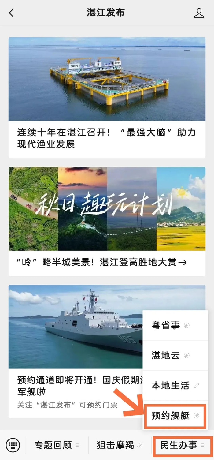 15时预约通道开启!关注湛江发布预约参观军舰,操作指南→