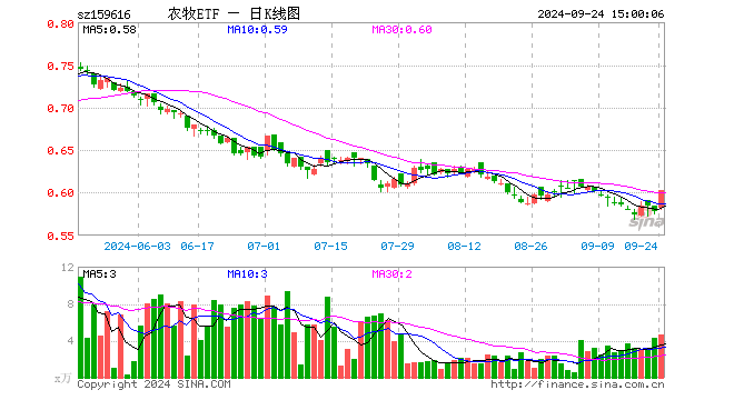 农牧ETF(159616)涨4.33%,成交额272.49万元