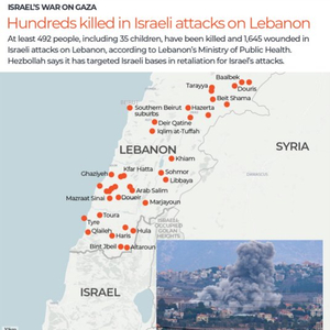根据黎巴嫩当局发布的数据,周一的空袭造成近500人死亡,其中包括数十名妇女和儿童,还有超过1600人受伤。这也为视为2006年以色列与黎巴嫩全面军事冲突后,多年敌对状态下死亡人数最多的一天。