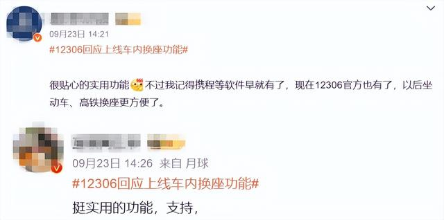 据中新经纬报道,12306客服告诉记者,车内换座功能是近期上线的,是为没抢到直达车票的用户提供的功能。