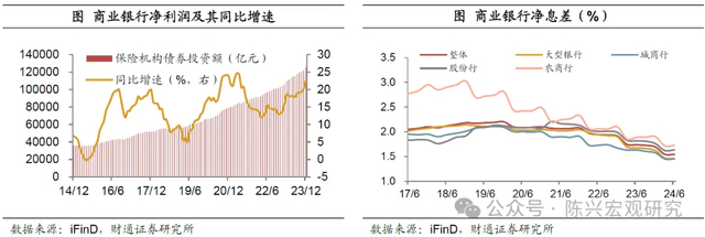 对经济的影响方面,银行净息差略有承压,推动存款利率下调。中国银行业目前业绩仍处于周期底部,商业银行净息差自2023年一季度跌破MPA(宏观评估)考核要求的1.8后保持下行趋势,目前已降至1.54低位。而本次存量房贷利率下调,促使银行向消费者让利约1500亿元,占2023年商业银行净利润的6.3%,预计导致银行总资产收益率下降5BP。为对冲LPR降低和存量按揭降息的影响,央行或将引导存款利率进一步下行,以压缩银行负债成本。参考去年利率调降政策后,四大行第四季度1、3、5年期定期贷款利率分别降低0.1、0.25与0.25个百分点,以应对资金盈利压力。