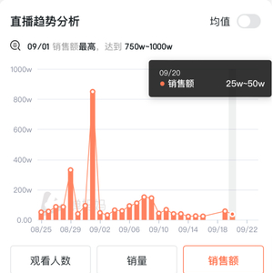 ▲三只羊直播带货近期销售额变化趋势。数据来源:蝉妈妈