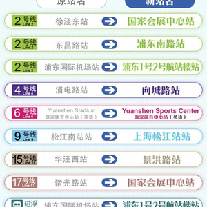 2号线徐泾东站和17号线诸光路站,均更名为“国家会展中心”站;