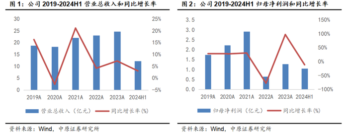 事件:公司公布2024年半年度报告,2024年上半年公司实现营业收入12.22亿元,同比增长3.03%。实现归属母公司股东的净利润1.05亿元,同比下滑11.50%,扣非后的归母净利润0.92亿元,同比下滑15.52%,基本每股收益0.12元。
