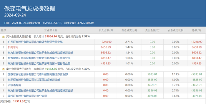 具体来看,当日呼家楼买入金额最多的是保变电气(600550.SH),其常用席位广发证券北京建外大街以高达1.22亿元的买入额高居该股买方榜首。