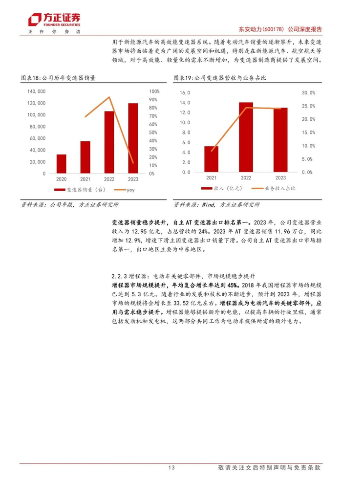 持续推进产品,增程器有望持续发力。产品谱系不断扩充,增程发动机已配套小鹏飞行汽车。高效增程发动机搭载小鹏汇天飞行汽车,已开始量产启动,此款产品为全球唯一能装下飞机的汽车提供移动超充,将成为公司市场开拓新的发力点。2024年9月,公司宣布全球首款分体式飞行汽车项目搭载东安动力发动机量产启动。增程器未来有望搭载多家车企:公司作为国内最早增程器量产的企业,已经具备技术与客户基础。目前已与国内多家造车新势力均有合作,根据车厂的量产计划,预计明年4季度会有较大规模的增程式量产车型上市。