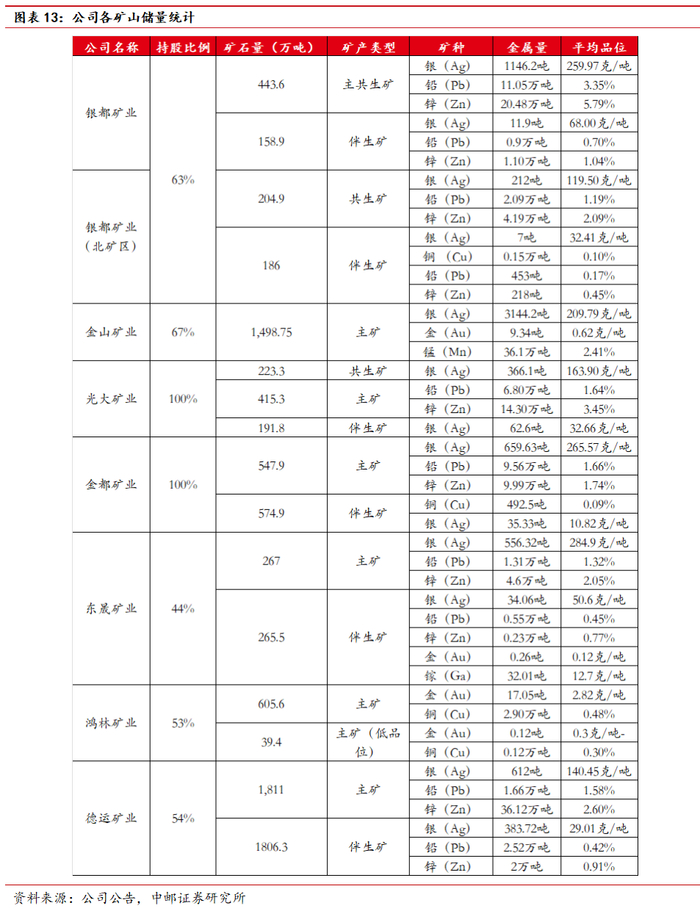公司主营业务为银、铅、锌、金等有色金属矿的采选和销售,旗下共有银都矿业、金山矿业、光大矿业、金都矿业、东晟矿业、鸿林矿业、德运矿业7家矿业子公司,白银储量近万吨,年采选能力近200万吨。