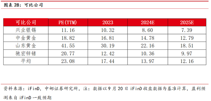 (1)今年以来,有色金属价格波动较大,我们以年初至今金属价格为基准,假设2024年银价为6964元/千克,锌/铅/铜价格为2.24/1.75/7.49万元/吨,金价为550元/克,2025年银价为7200元/千克, 锌/铅/铜价格为2.3/1.8/8.5万元/吨,金价为580元/克,2026年银价为7500元/千克, 锌/铅/铜价格为2.3/1.9/9万元/吨,金价为600元/克.