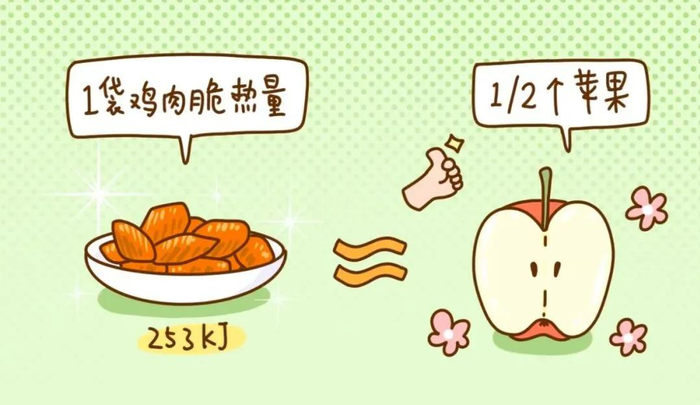一袋鸡胸肉脆的热量是 60 大卡,就跟吃半个苹果差不多,堪比晚上拿进被窝里吃都不怕胖的程度!(可以但不建议)