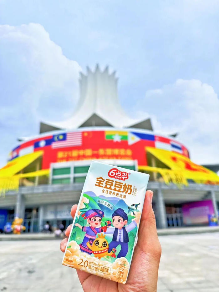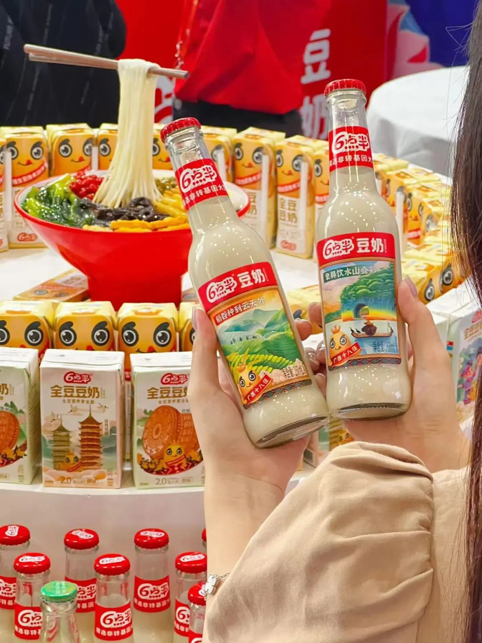 广西秀丽山水和多彩民俗与特色美食在此融合创新,六点半作为广西本土特色企业,本届东博会携两款融入广西特色元素的创新包装豆奶参展。