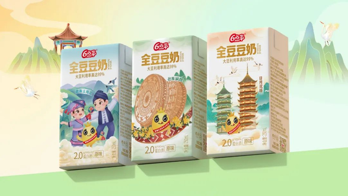 从“象鼻饮水山叠彩”的奇趣景象,到“稻谷种到云天外”的田园风光;从“男女恋爱摆歌台”的民俗风情,到“桂林山水甲天下”的壮丽“双子塔”景观;再到河池铜鼓之乡的古老回响,以及靖西壮族绣球的精美绝伦……这些丰富多彩的广西文化符号,被巧妙地融入到豆奶的包装之中,一瓶6点半豆奶在手,无需远行,广西特色风味、地道美食也能即刻拥有!