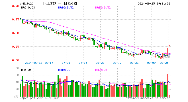9月25日,化工ETF(516020)开盘涨1.29%,报0.550元。化工ETF(516020)重仓股方面,万华化学开盘涨2.00%,盐湖股份涨1.37%,华鲁恒升涨1.53%,宝丰能源涨0.83%,巨化股份涨1.44%,龙佰集团涨0.61%,卫星化学涨0.44%,恒力石化涨1.37%,荣盛石化涨1.47%,桐昆股份涨2.57%。