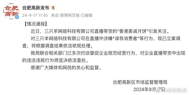 历时大半个月,每天都要上热搜的三只羊,被立案调查了。