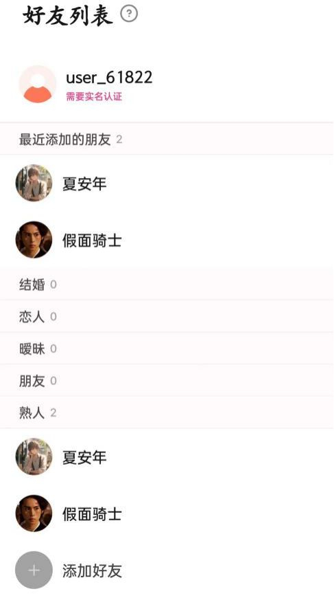 值得一提的是,Lovey Dovey中包含好感度机制,刚添加的好友和新创建的角色均会显示在Lv1等级"熟人"分类下,随着好感度增加,会依次升级到Lv2 朋友、Lv3 心动、Lv4 恋人、Lv5 结婚。