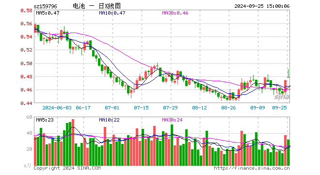 规模方面,截止9月24日,电池50ETF(159796)最新份额为17.62亿份,最新规模为8.36亿元。回顾2023年12月29日,电池50ETF(159796)份额为16.40亿份,规模为9.59亿元。即该基金今年以来份额增加7.44%,规模减少12.83%。