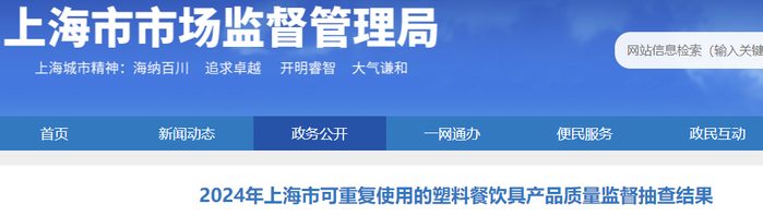 2024年上海市可重复使用的塑料餐饮具产品质量监督抽查结果公布