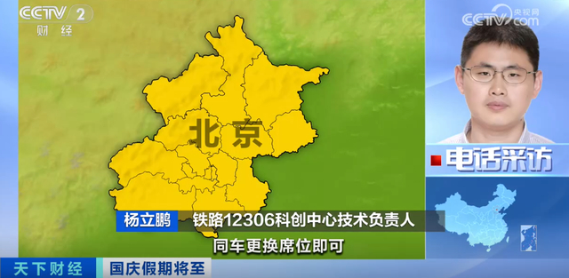 铁路12306科创中心技术负责人 杨立鹏:9月29日至10月1日节前出行高峰时段,北京至天津往返、苏州至上海、南京至上海、深圳至香港往返、保定至北京、南宁至广州、上海至苏州等方向的部分车次仍有余票;10月6日至7日节后返程高峰时段,上海至南京往返、深圳至香港往返、广州至南宁、北京至上海、上海至苏州、成都至重庆等方向的部分车次仍有余票。