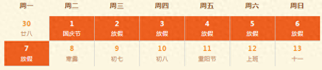 今年国庆假期从10月1日至7日,共7天,铁路国庆假期运输从9月29日启动,到10月8日结束,提前两天,延后一天,为旅客错峰出行提供便利。