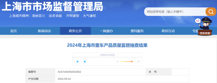 2024年上海市童车产品质量监督抽查所检项目符合相关标准的产品