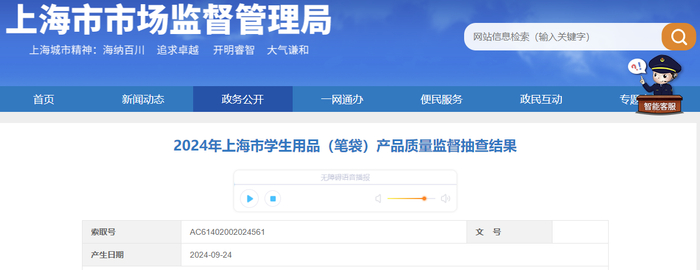 2024年上海市学生用品(笔袋)产品质量监督抽查结果公布