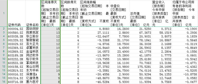上述股票价格基本在3元/股以下,总市值不超过40亿元。从上半年经营业绩看,归母净利润处于亏损或微利。