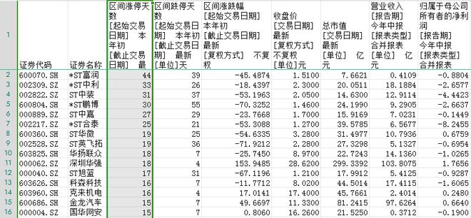 据览富财经观察,在华为概念板块中,今年以来区间涨停天数、区间跌停天数同时超过20天的有*ST富润、*ST中利、ST中装、*ST鹏博、ST中嘉、*ST合泰,清一色的ST股。炒作风波之后,悉数以下跌收场,有甚者跌幅超过70%