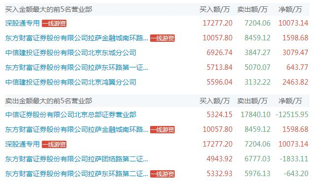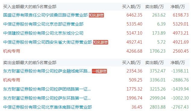 龙虎榜数据显示,近一个月,该股13次上榜。其中,东方财富证券拉萨金融城南环路证券营业部、东方财富证券拉萨团结路第一证券营业部、中信证券北京总部、国盛证券宁波桑田路证券营业部等多家顶级游资悉数现身。