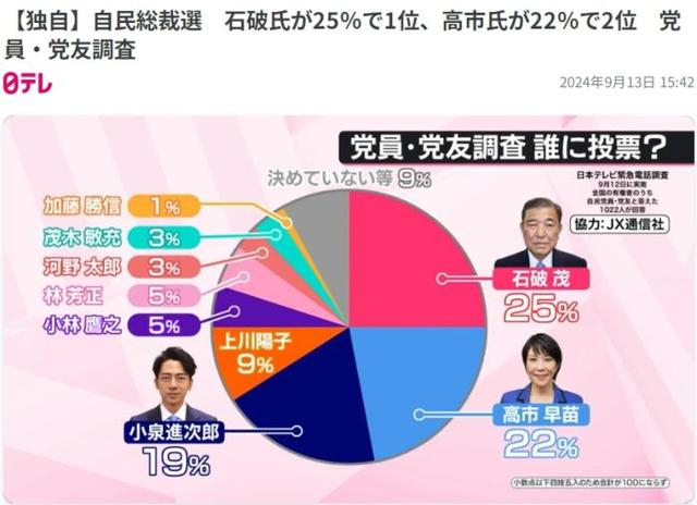 需要指出的是,自民党总裁选举,说到底是一个党内选举,只看民调支持率是不够的,民调只能作为参考之一。正如上文中提到的,此前日媒发布的各类民意调查,石破茂、小泉进次郎的支持率一直高居不下,是因为很多普通日本民众对政治关注度并不高,知道的政客名字就不多。