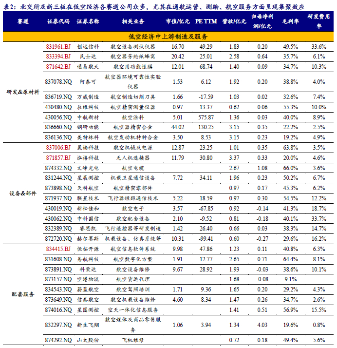 公司标的:北交所和新三板聚集一批低空经济产业链领域标的
