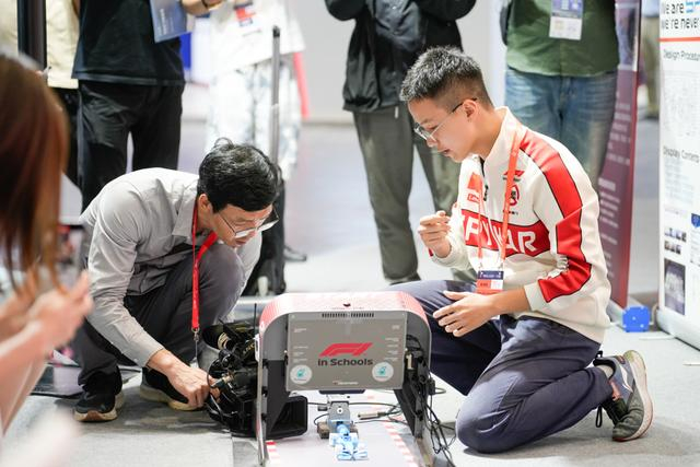 在市西中学F1 in schools项目的SPYKAR车队精心布置的展台吸引了不少观众的注意,这里不仅有车队历年来的赛车真品,还有测试展示专区,展现风洞的威力。F1 in schools是一项世界顶级科技挑战赛,目前全球每年有40万青少年参与此项赛事。这项赛事与真正的 F1 汽车赛事的流程一样,学生们组建车队,分配职务,各司其职,向外界展示车队的形象。