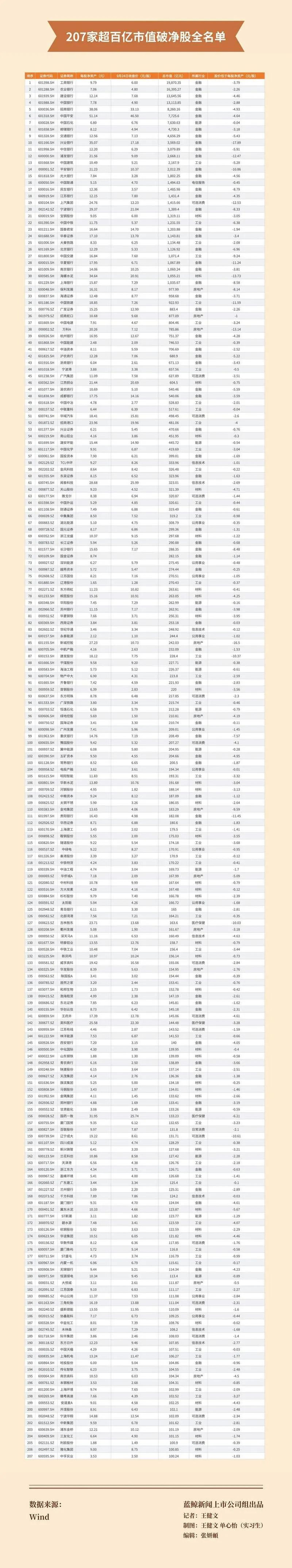 数据|图解大市值破净股:超200家市值过百亿,金融公司占比超三成