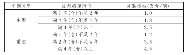 (一)提前报废老旧营运柴油货车补贴标准见报废老旧营运柴油货车补贴标准。