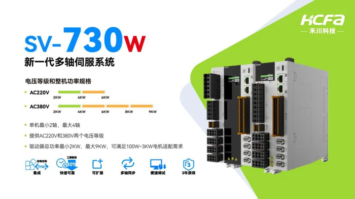 此次获奖的,SV730W多轴交流伺服系统是禾川科技多轴运动控制为一体的伺服产品,主要用于机床和自动化设备的运动控制,是工业自动化不可缺少的主要元器件。其主控芯片由禾川自主研发,解决了过去进口元器件卡脖子的问题,在实现了多轴单芯片控制技术突破的同时,产品国产化率更高。