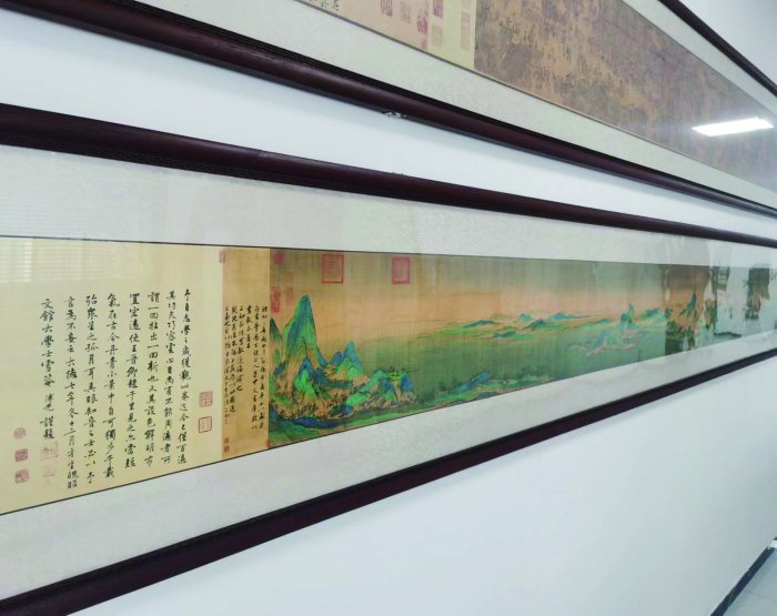在民士达办公大楼的文化墙上,记者看到了印在芳纶纸上的《千里江山图》,青绿明艳、光华灿烂。
