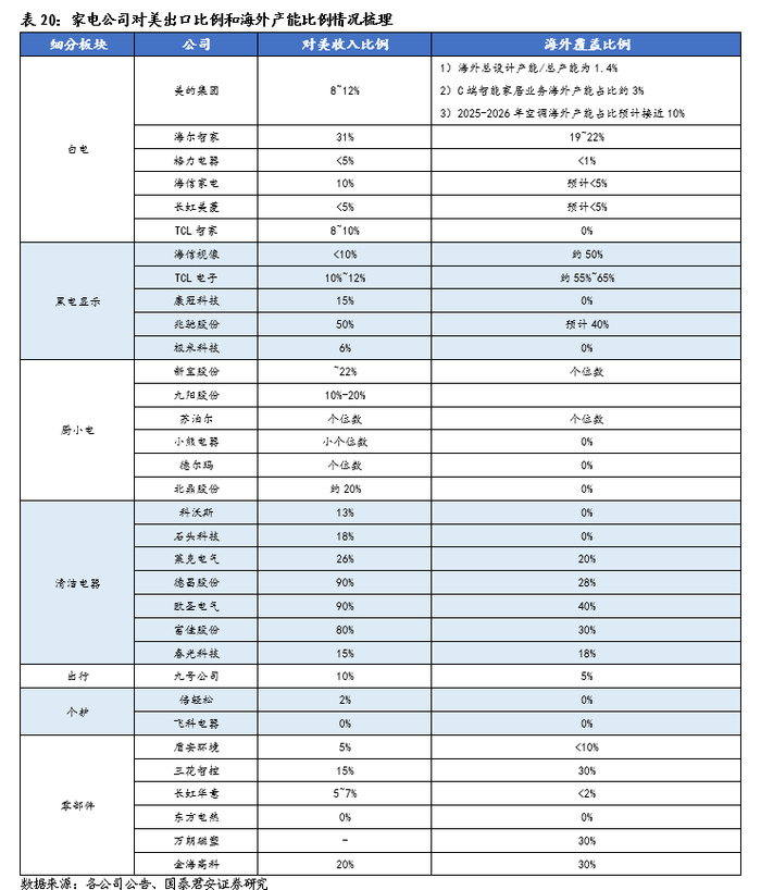 产能转移趋势确立,后续存在继续加关税可能性:此前由于中国依赖度高,家电部分品类并未作为美国主要加关税对象,但经历2018~2024年的产能外迁,目前海外各品类已有足够的替代产能,所以不排除后续关税继续加征。