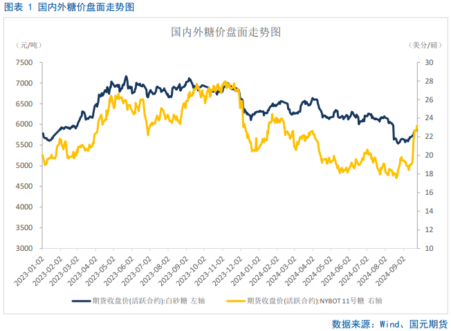 国内市场方面,由于超强台风“摩羯”对两广与海南地区甘蔗造成了明显影响,预计我国2024/25榨季白糖增产幅度不及预期,产量或不及1100万吨。新甜菜糖定价已经在盘面反映,悲观情绪暂歇,后面将由新甘蔗糖定价,但不宜过分乐观。