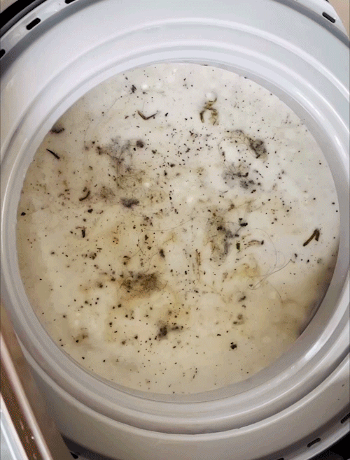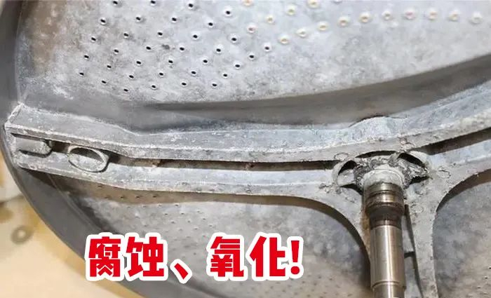 就像喝茶的杯子会有茶渍一样,灰尘、毛发、人体分泌物、水垢等都会堆积、粘附在洗衣机夹层里,像下面这样: