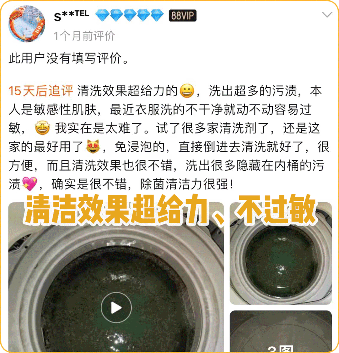 但小黄瓶无需浸泡,一接触水马上开始发力,能接触到洗衣机的各个区域。