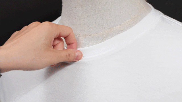 领口处采用了螺纹锁边工艺,使领口更加牢固。