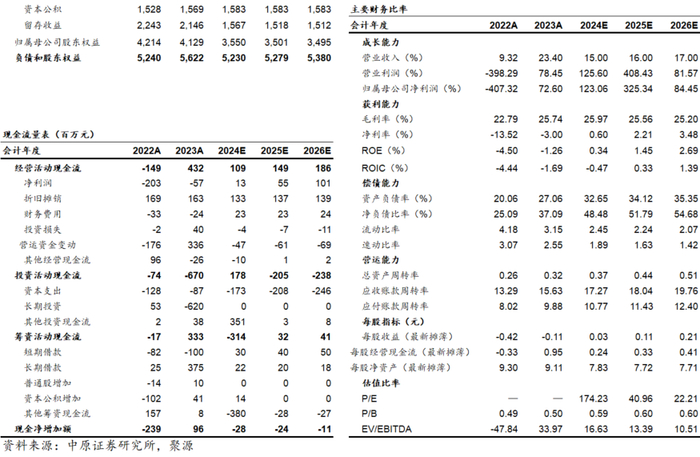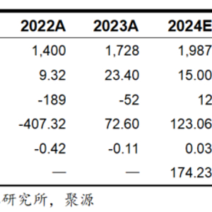 投资评级:我们预测公司2024、2025、2026年的每股收益分别为0.03、0.11和0.21元,参考9月24日收盘价,对应的市盈率分别为174.23、40.96和22.21倍,给予公司“谨慎增持”评级。