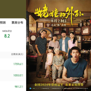 全球票房达2700万美元,泰国国内票房达3.39亿泰铢,占总票房将近四成。《姥姥的外孙》也是泰国当之无愧的年度票房第一本土电影,同时是影史票房排名第十一的本土片。该片征战东南亚的成绩斐然,登陆印尼、新加坡、缅甸、马来西亚和菲律宾之后,均刷新了当地泰国电影的票房纪录。或许,重新审视泰国电影业的时刻又来了。